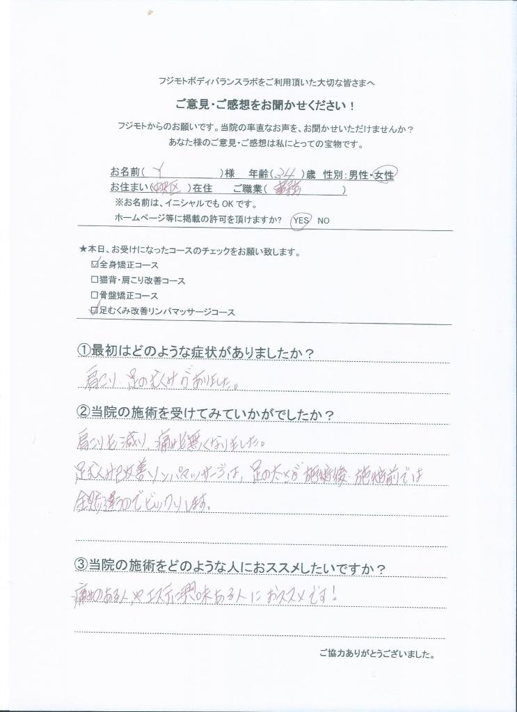 施術後のスッキリ感、足のむくみからの開放感が最高です。 自分の体を今度こそ大事にしたい方にオススメします! (女性)